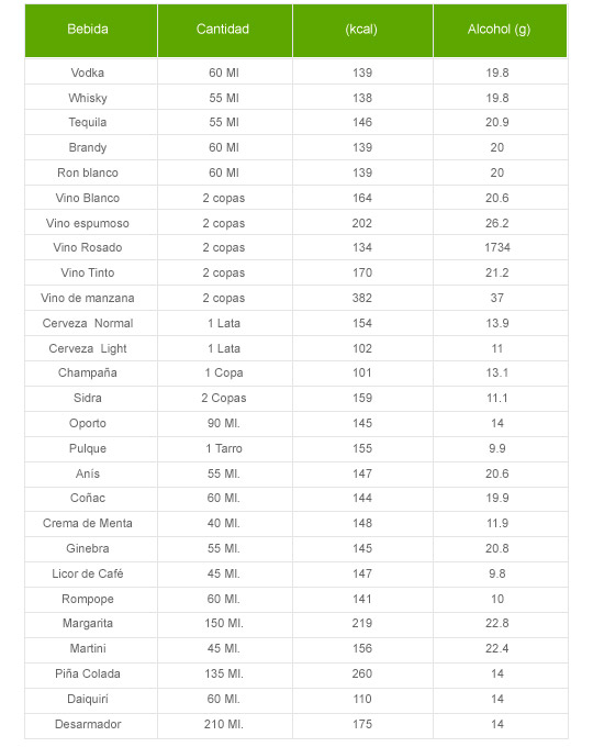 ¿Sabes cuantas calorías contiene tu bebida alcohólica favorita?
