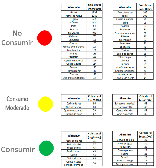 - Colesterol presente en los productos de origen animal como la carne de res, cerdo, pollo, vísceras, mariscos, huevo, lácteos, etc.