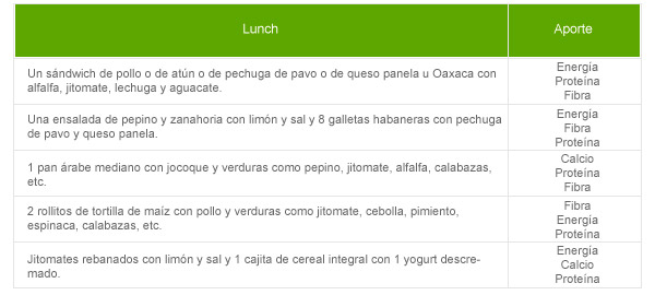 - Procura que entre el desayuna y el lunch se incluyan cereales, lácteos, proteína, frutas y verduras.